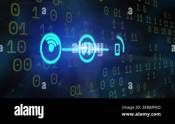 Digital animation of glowing neon qr code against glowing neon qr code ...