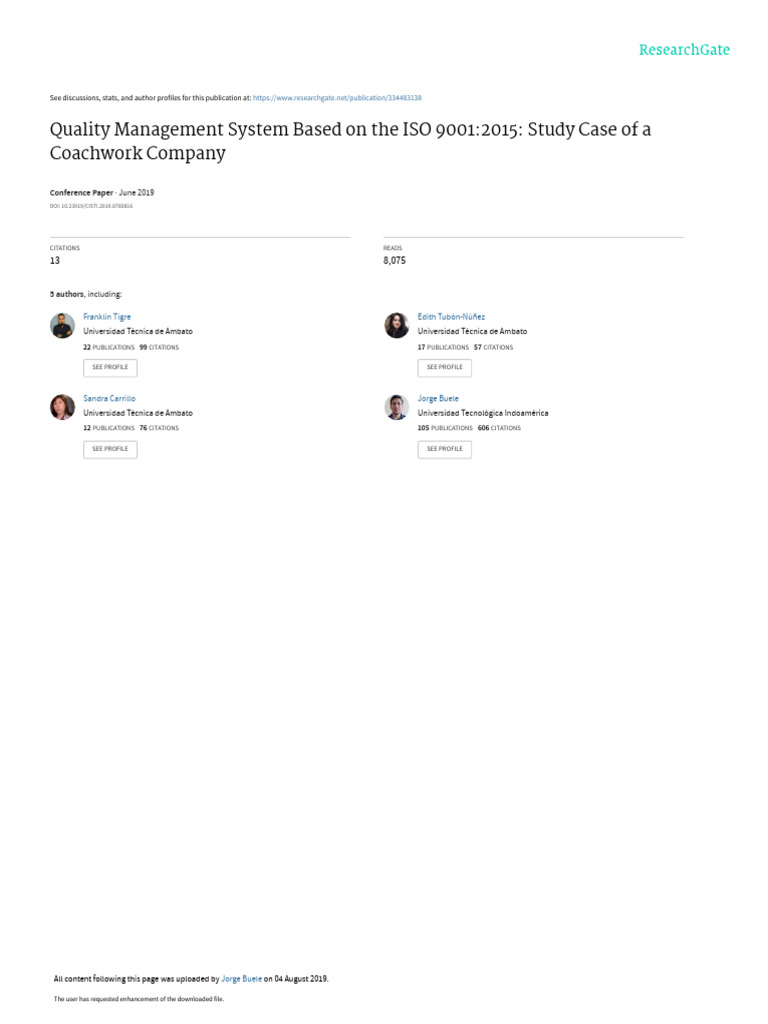 (PDF) Quality Management System Based on the ISO 9001:2015: Study Case ...