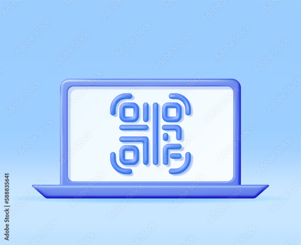 3d QR Code Icon on Computer. Render Modern QR Code Symbol. Concept of ...