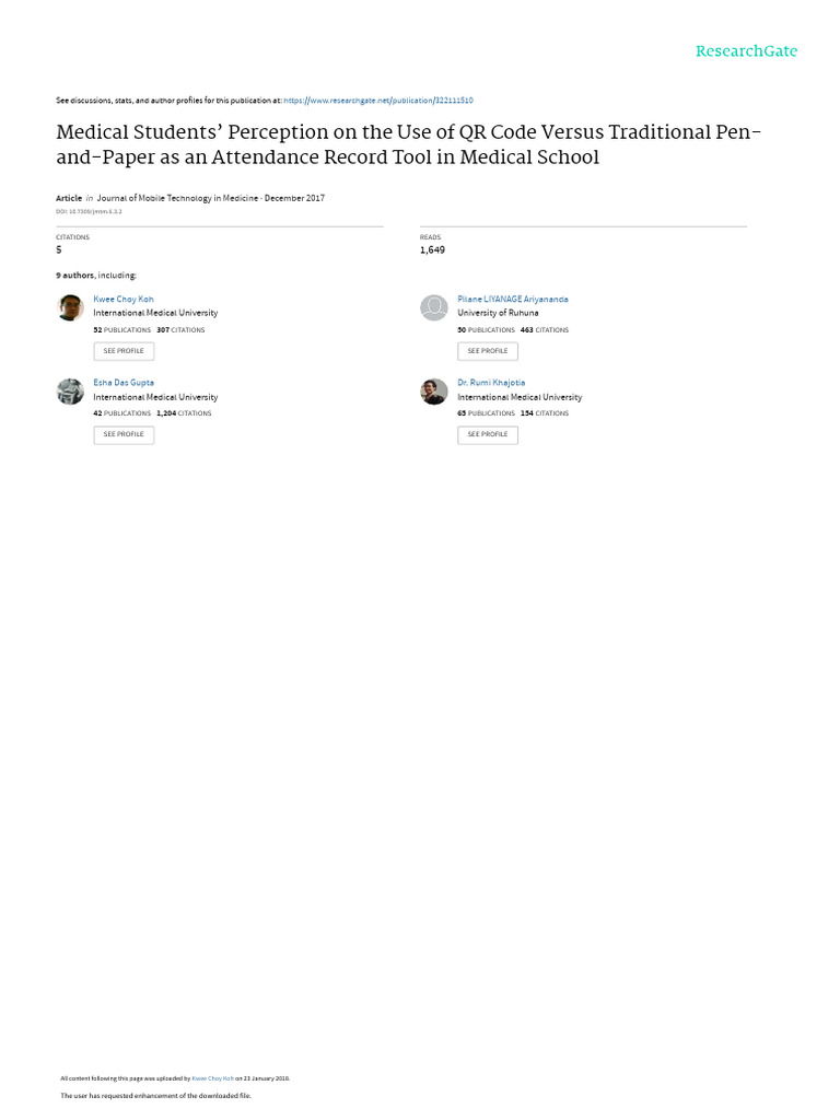 2017 - Medical Students' Perception On The Use of QR Code Versus ...