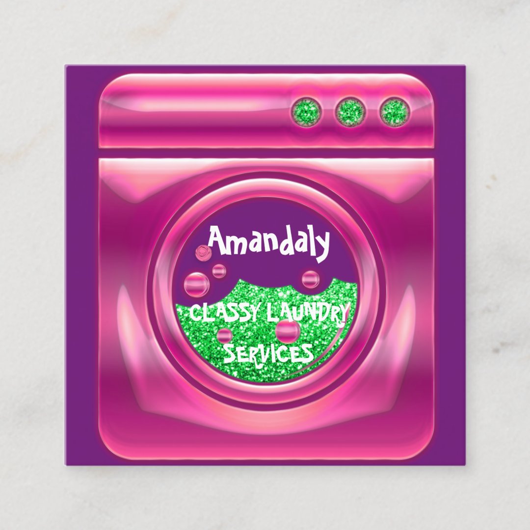 Laundry Washing Machine Home Cleaning QR Code Pink Square Business Card ...