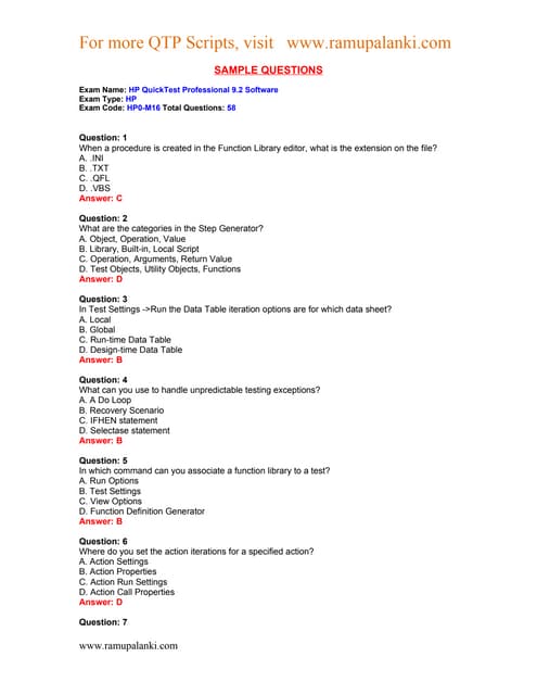hp's Quick Test Professional(QTP) Practise Examples Materials Tutorials ...