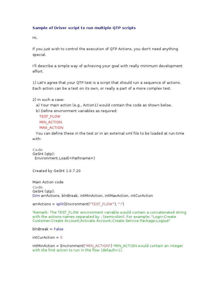 Driver Script To Run Multiple QTP Scripts | PDF | Control Flow | Software