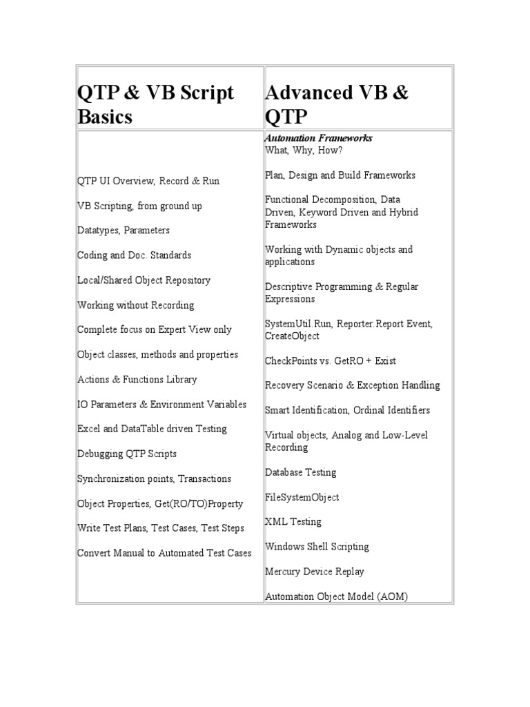 QTP & VB Script Basics Advanced VB & QTP: Automation Frameworks | PDF