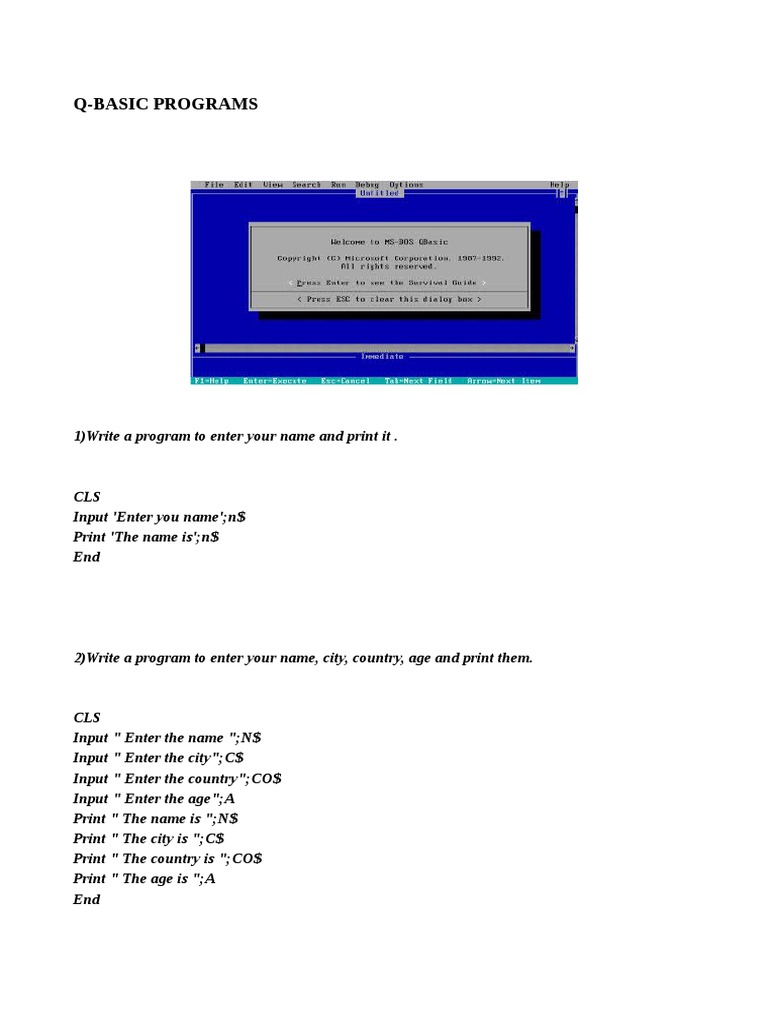 Qbasic Programming Examples and Exercises - ProgrammingBasic | PDF ...