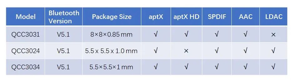 蓝牙芯片组QCC3031、QCC3024和QCC3034之间的区别 - 慕宇科技