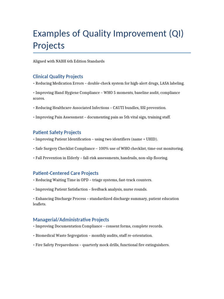 10 Quality Improvement Project Examples for Enhanced Patient Care ...