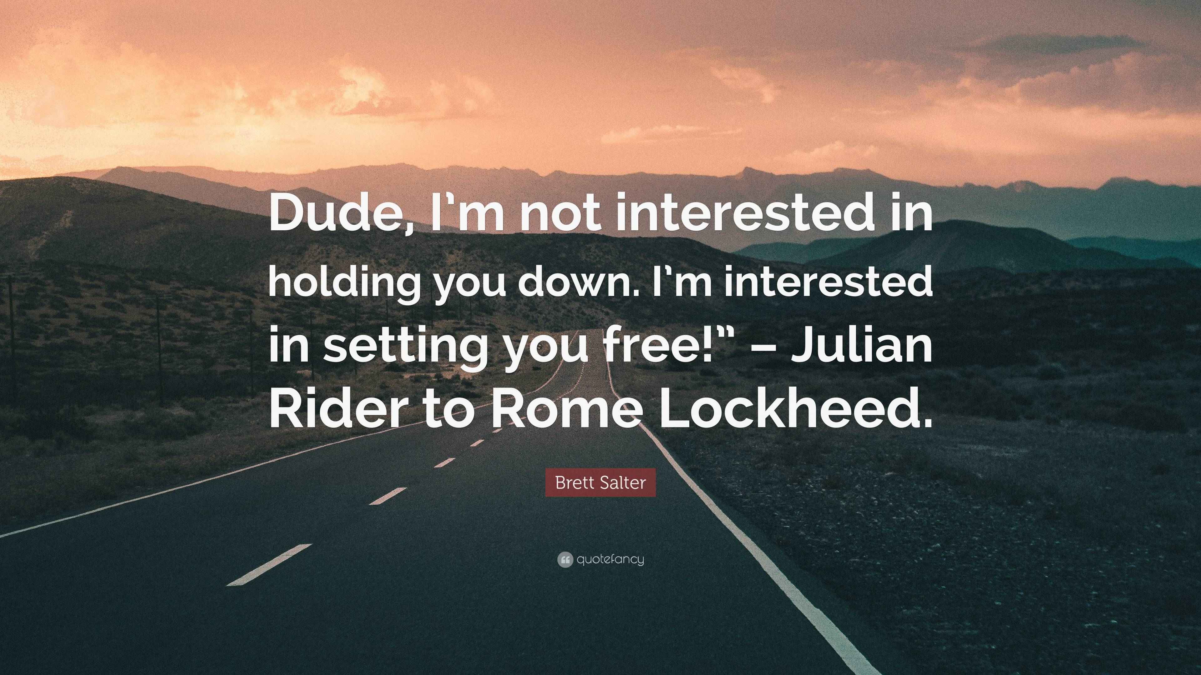 Brett Salter Quote: “Dude, I’m not interested in holding you down. I’m ...