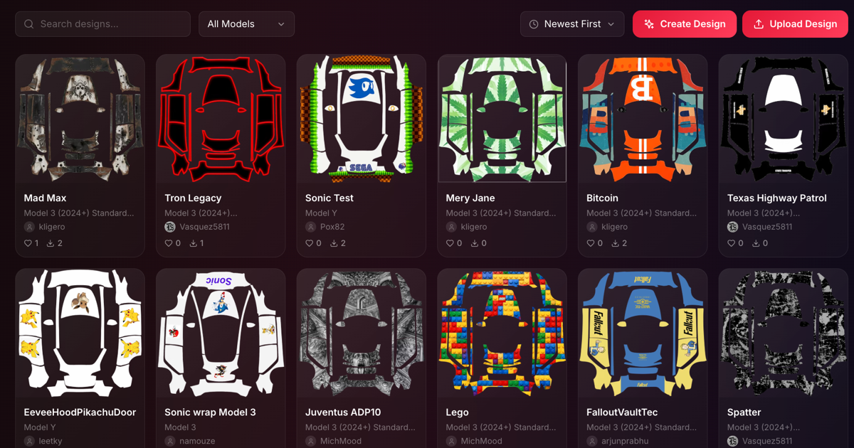 Tesla Wrap Gallery - Free AI Wrap Designer & Gallery