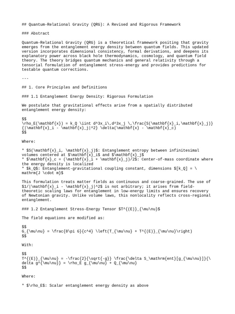QRG Corrected Complete Theory | PDF | Quantum Entanglement | Gravity