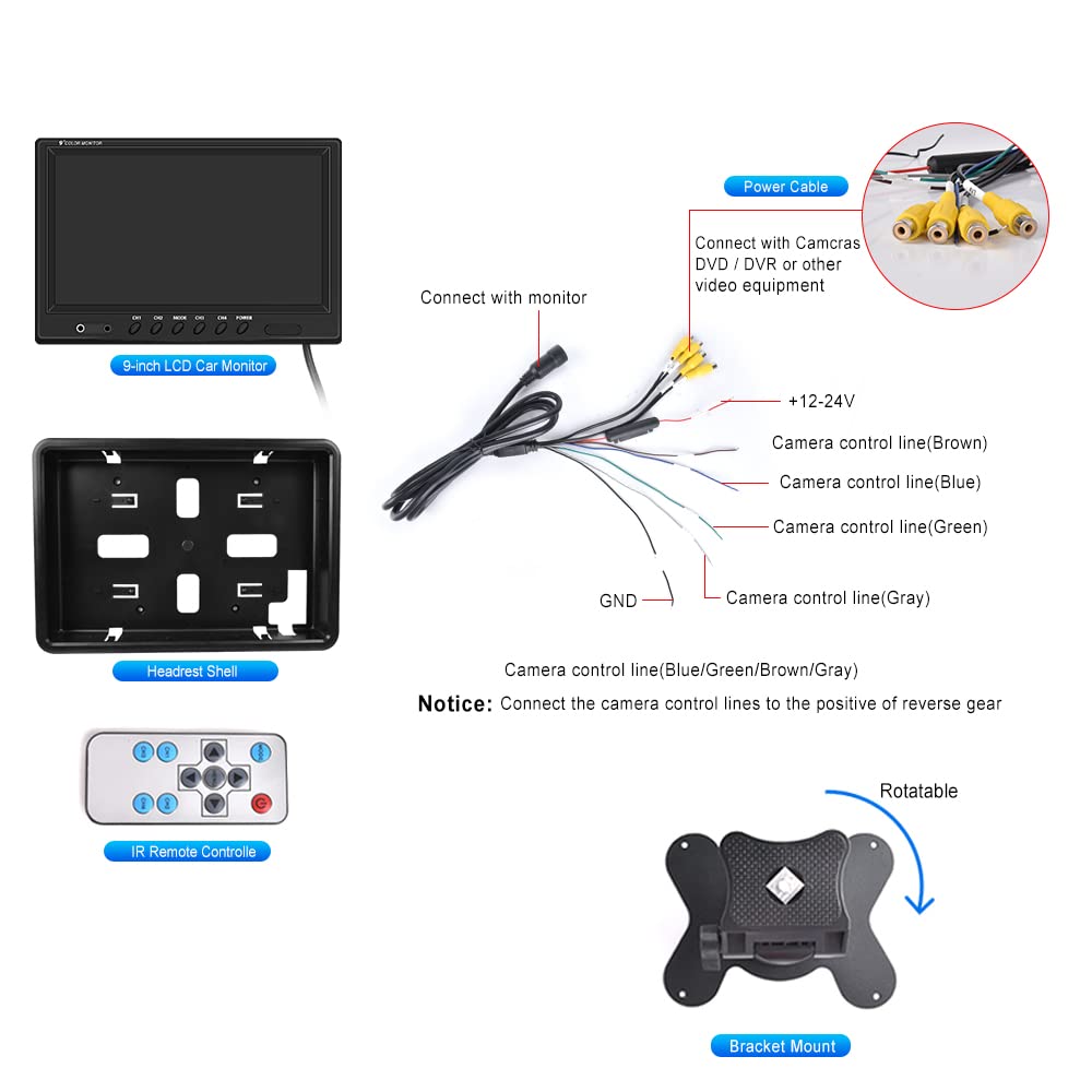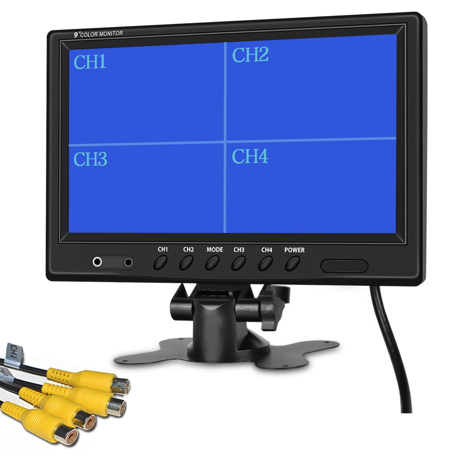 9 Inch Backup Camera Monitor Only, Quad Split Screen,Hikity 4 Channels ...