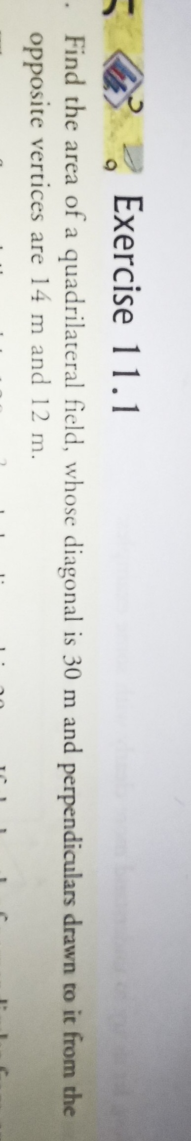 ?. Exercise 11.1 Find the area of a quadrilateral field, whose diagonal ...