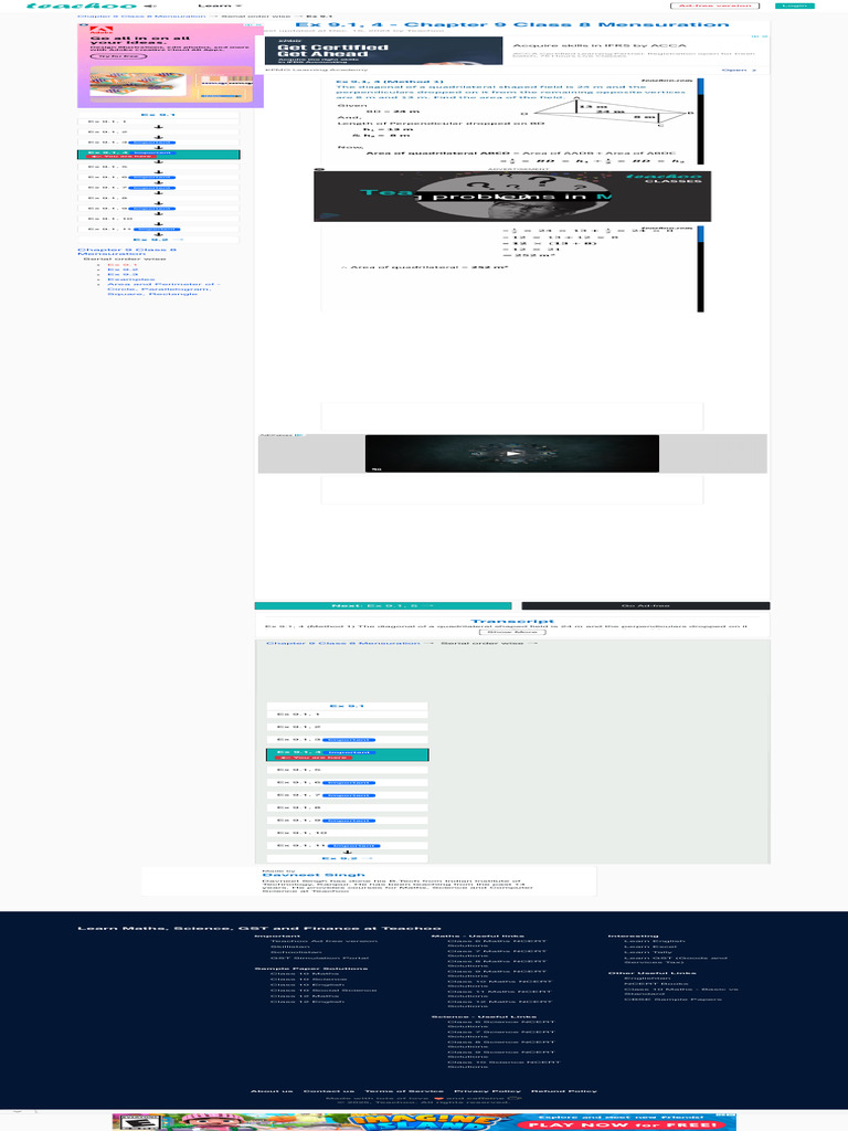 Ex 9.1, 4 - The Diagonal of a Quadrilateral Shaped Field is 24 m | PDF ...