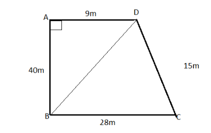 Find the area of the quadrilateral field ABCD whose sides $ AB = 40\\;m ...