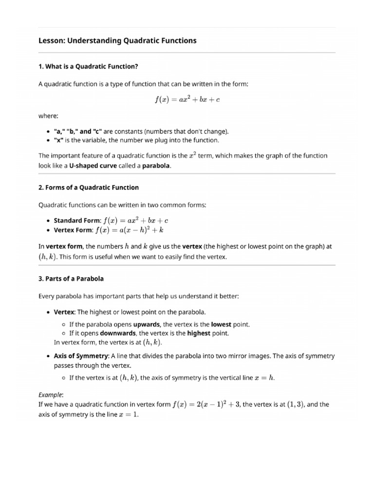Quadratic Functions Simplified Lesson | PDF