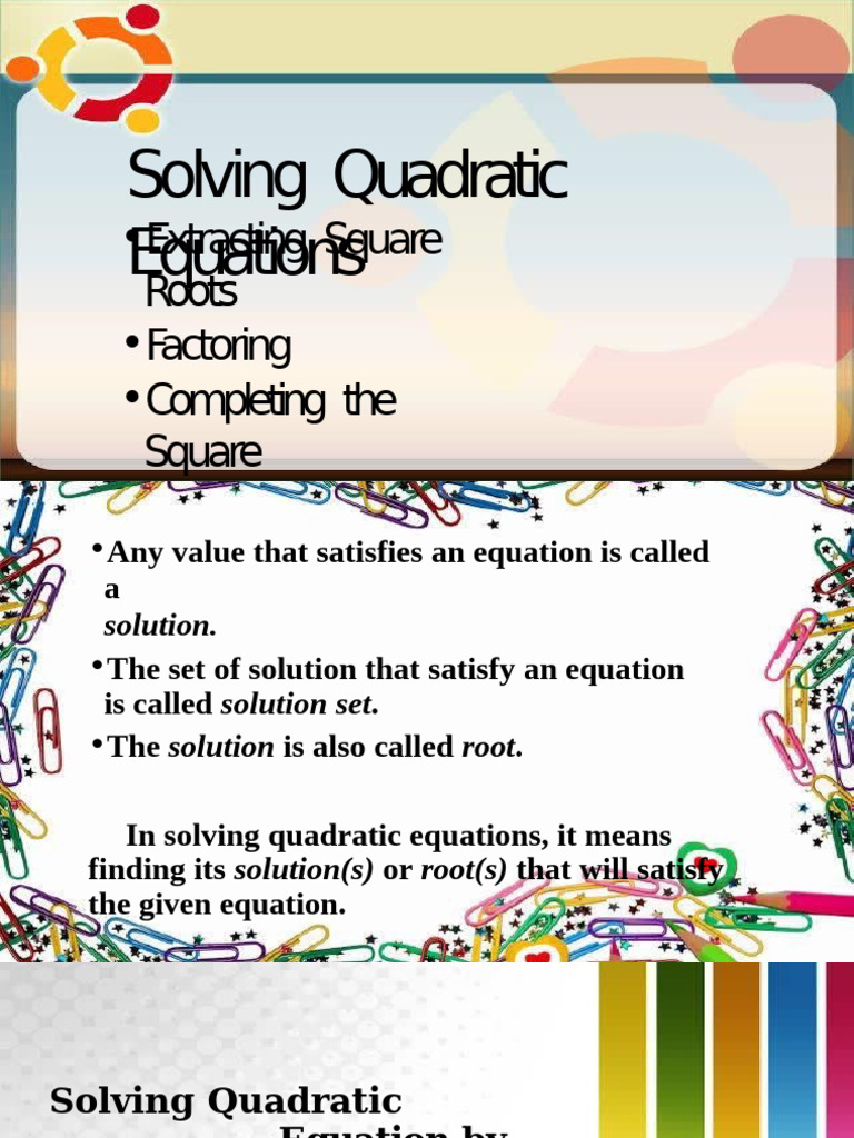 Lesson 2 Solving Quadratic Equation 2 | PDF | Quadratic Equation ...