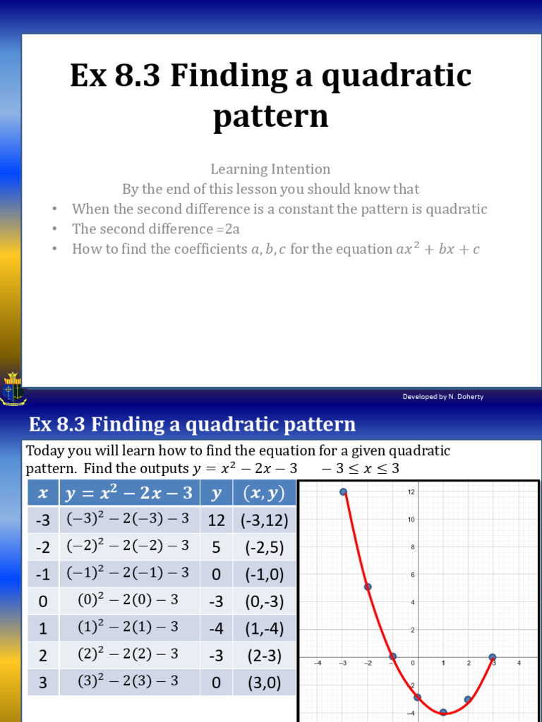 Quadratic Patterns Grade 11 2024 - QUADRATIC PATTERNS – GRADE 11 ...