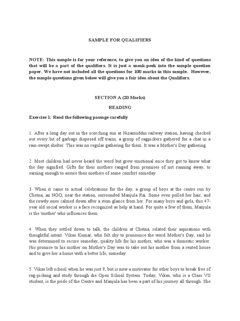 Qualifier Exam Sample Questions Guide | PDF | Part Of Speech | Cognition