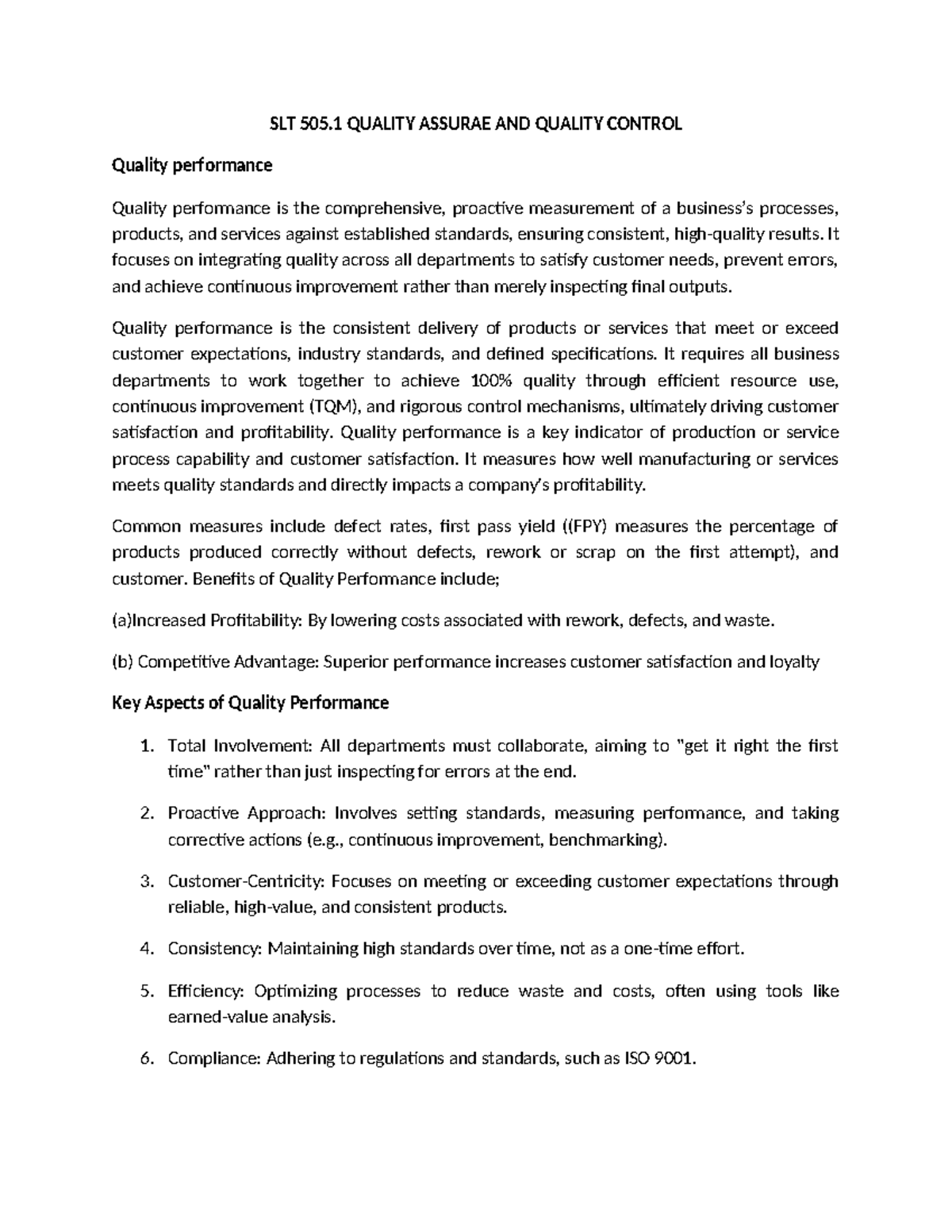 SLT 505.1 Quality Assurance and Control: Key Concepts and Methods - Studocu