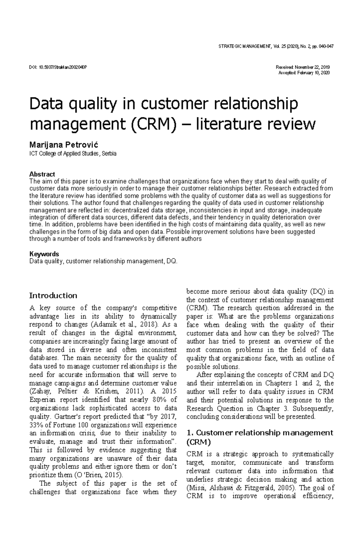 Data Quality Challenges in CRM: A Literature Review (STRATEGIC ...