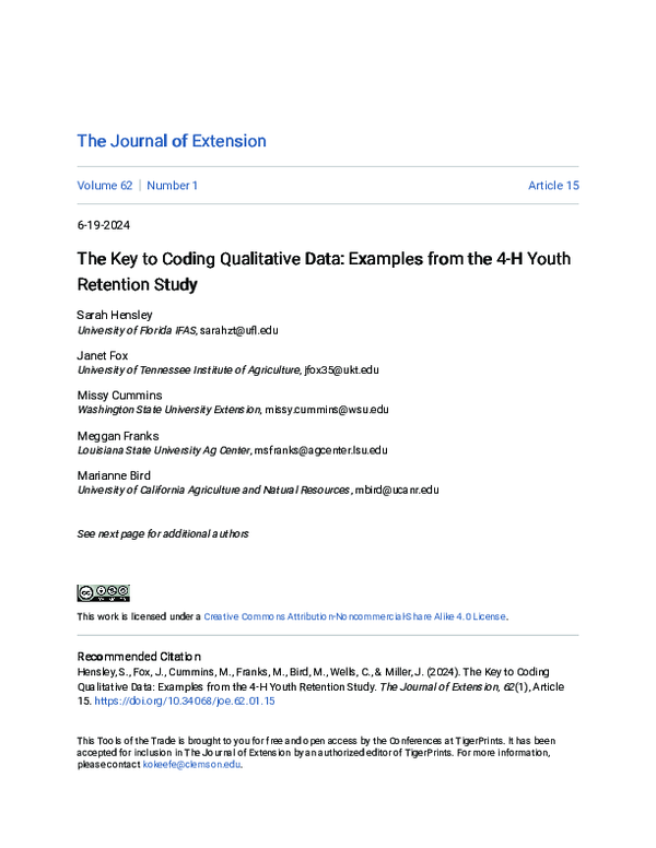 (PDF) The Key to Coding Qualitative Data: Examples from the 4-H Youth ...