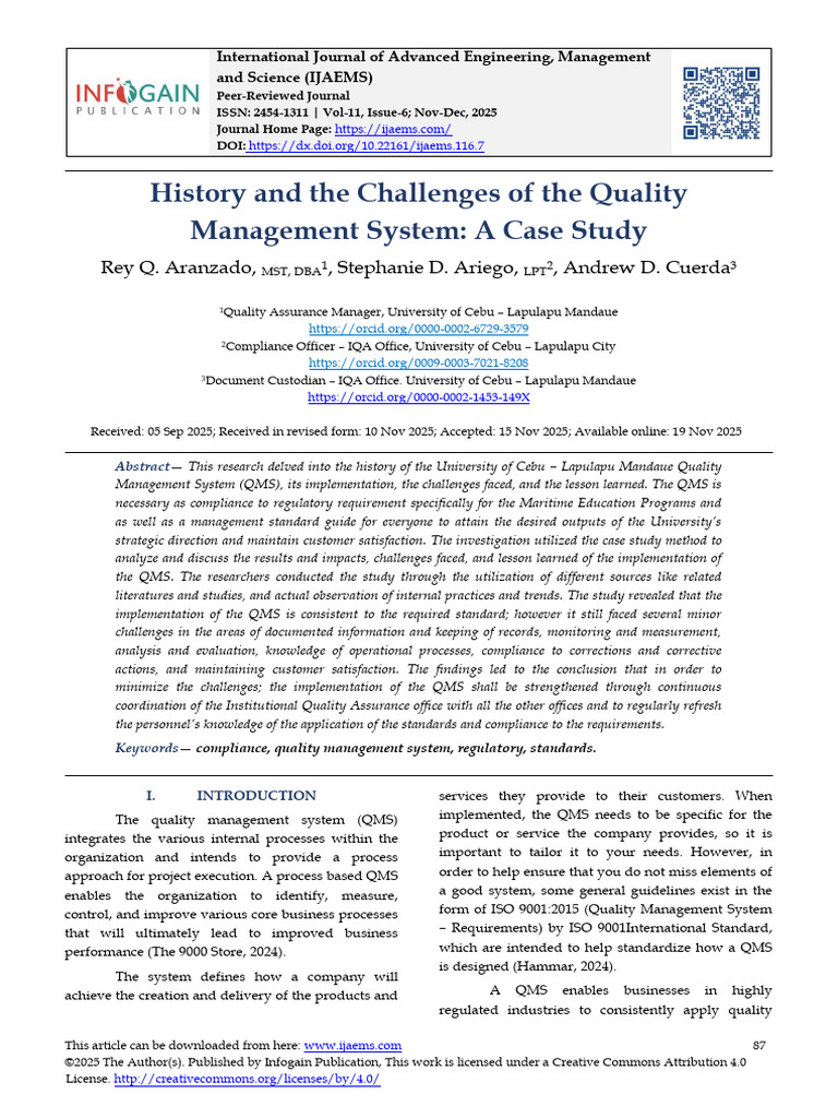 (PDF) QUALITY MANAGEMENT SYSTEM IN SELECTED ENTERPRISE: CASE STUDY