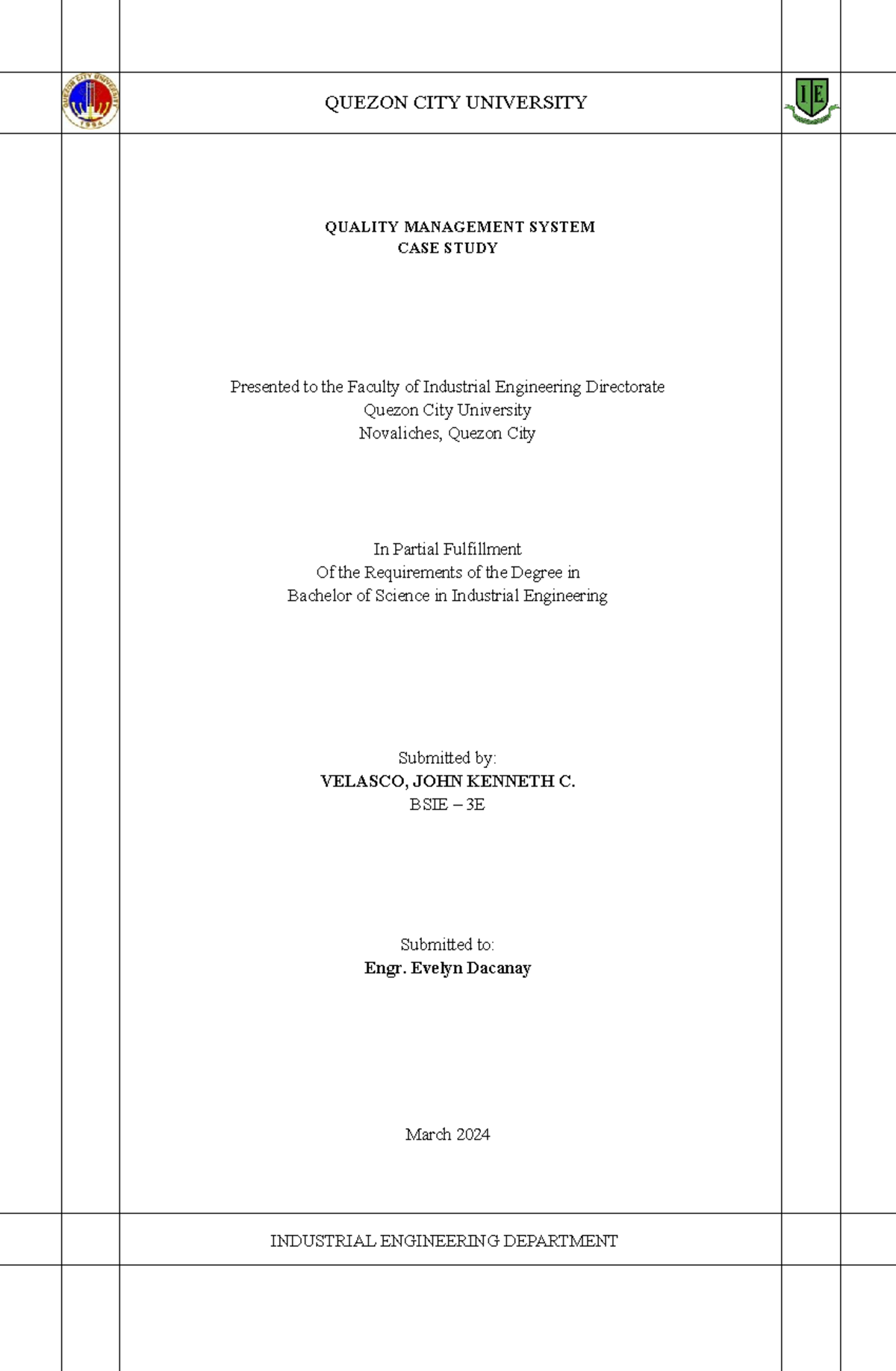 Quality Management System Case Study (BSIE - 3E) Analysis and Insights ...