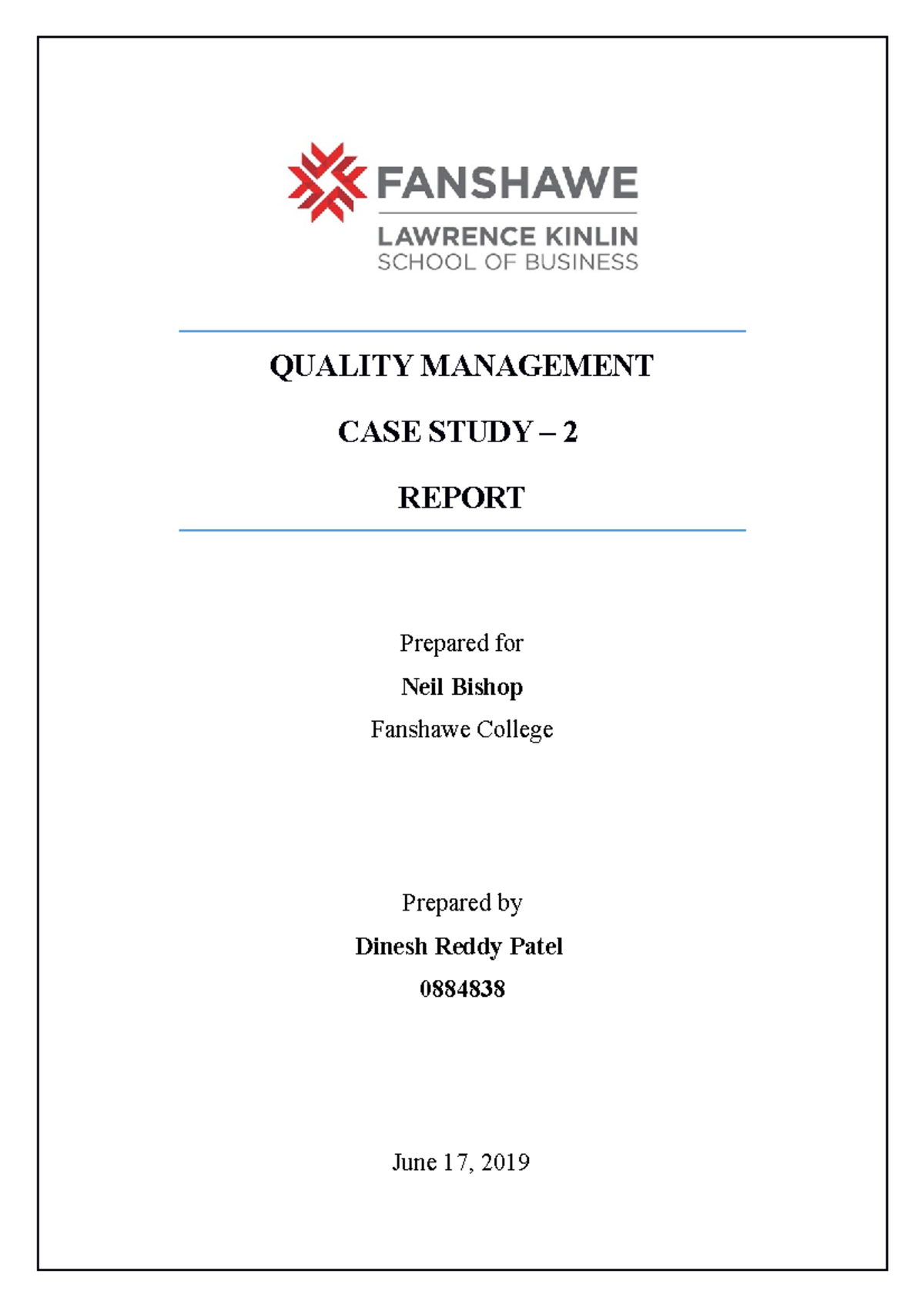 Quality Management Case Study Plan | PDF | Quality (Business) | Quality ...