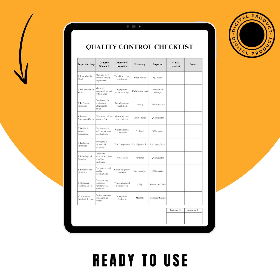 Quality Control Checklist Template: QA Management (digital Download) - Etsy