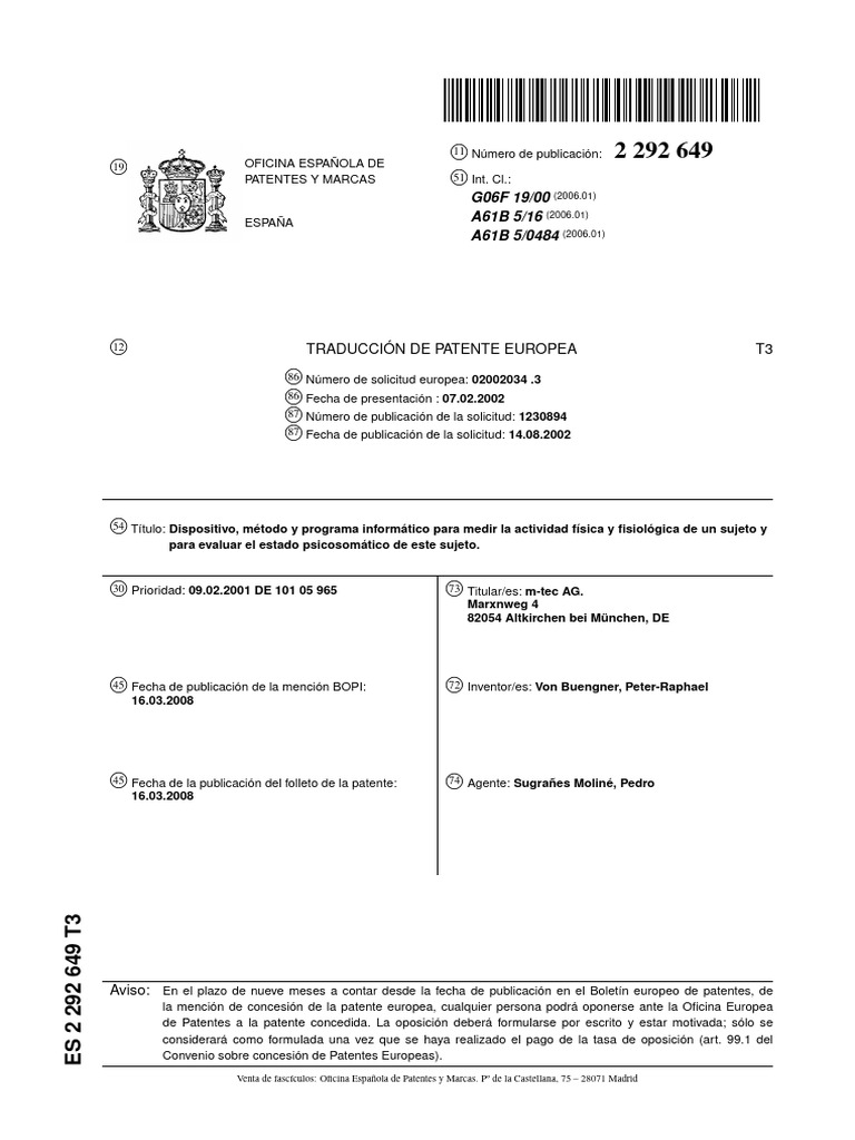 Quantec Pro ES2292649T3 | PDF | Sentidos | Sensor