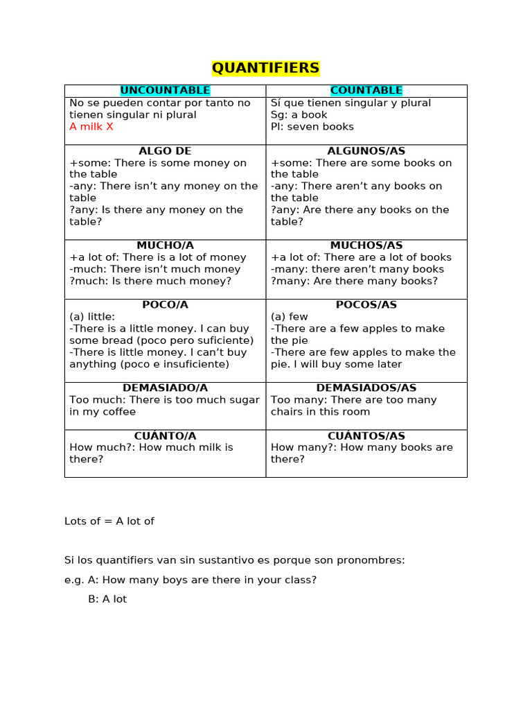QUANTIFIERS- CHART AND EXERCISES | PDF