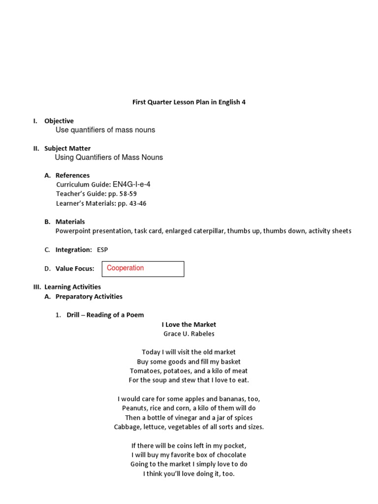 Demo LP in English 4 Quantifiers of Nouns | PDF | Lesson Plan