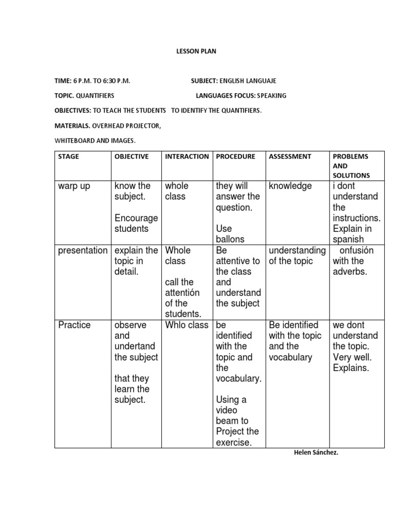 Effective TEFL Lesson Plan for Teaching Quantifiers | Course Hero