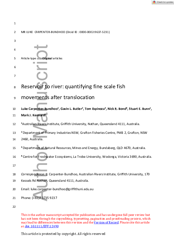 (PDF) Reservoir to river: Quantifying fine‐scale fish movements after ...