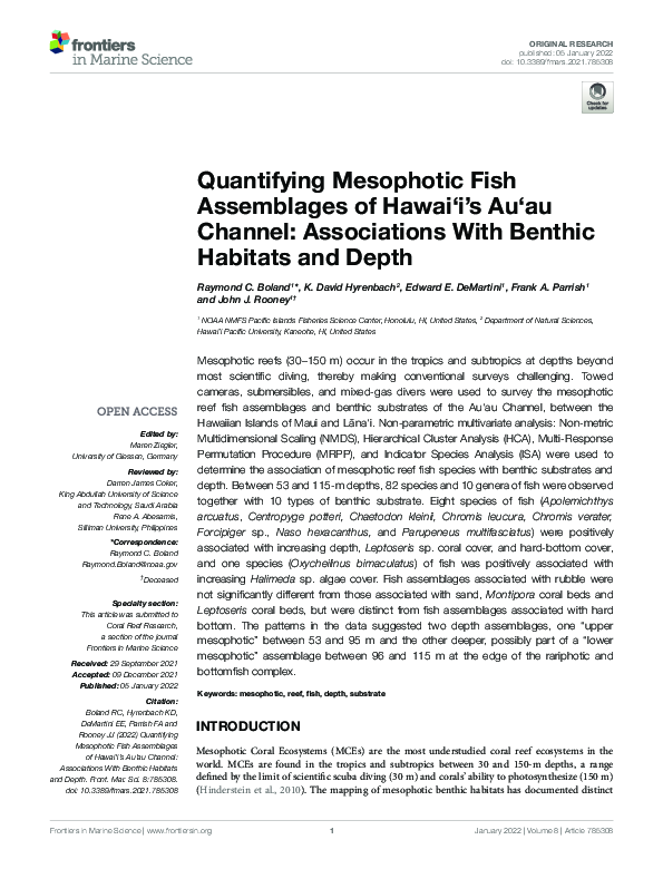 (PDF) Quantifying Mesophotic Fish Assemblages of Hawai‘i’s Au‘au ...