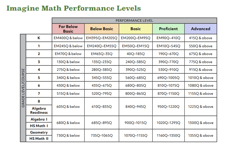 Expected Quantile® growth in Imagine Math – Imagine Learning Help Center