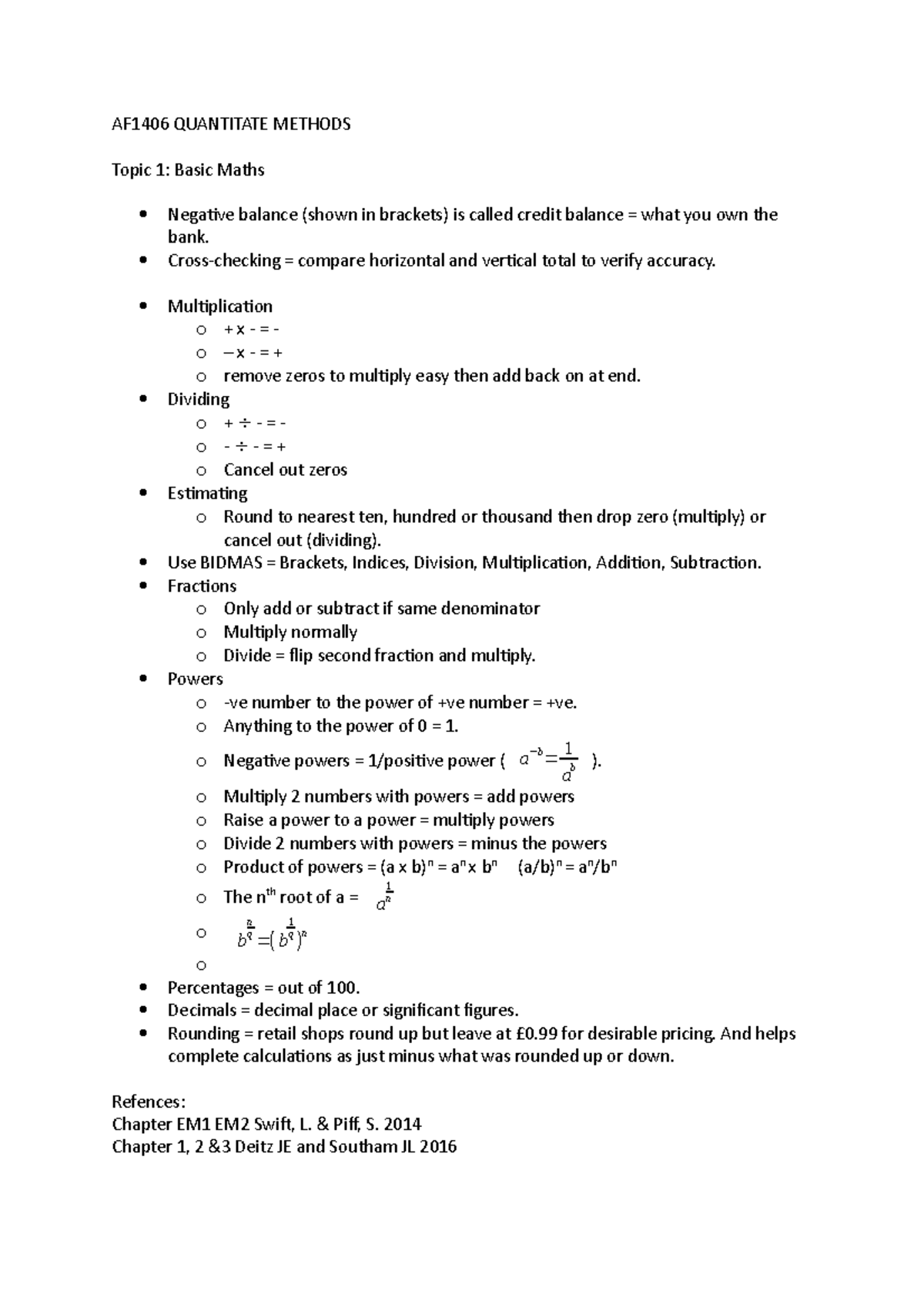 AF1406 Quantitate Methods - AF1406 QUANTITATE METHODS Topic 1: Basic ...