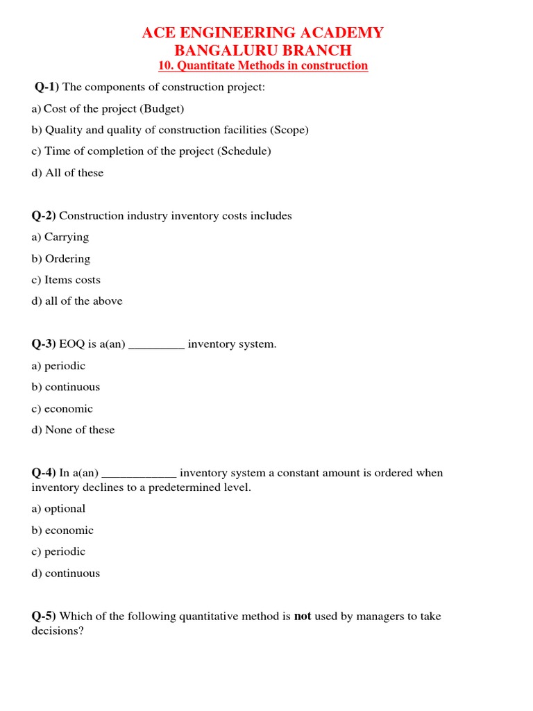 Quantitate Methods in Construction Management | PDF | Inventory | Level ...