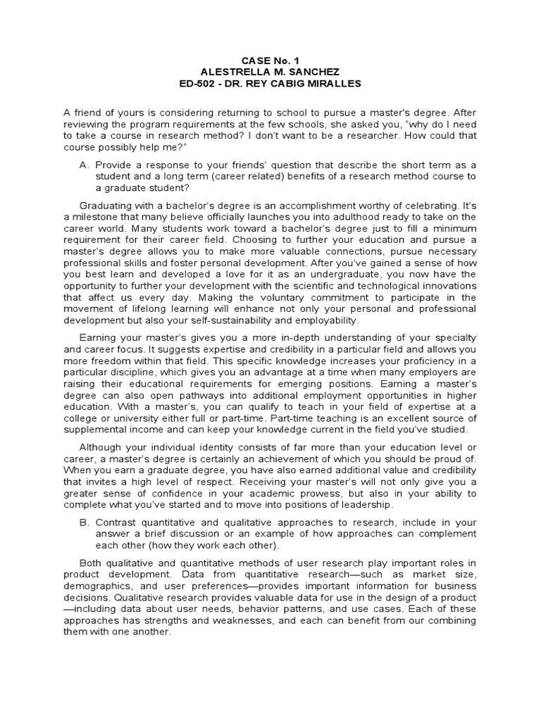 Sample of Case Study (Case No. 1) | PDF | Quantitative Research ...