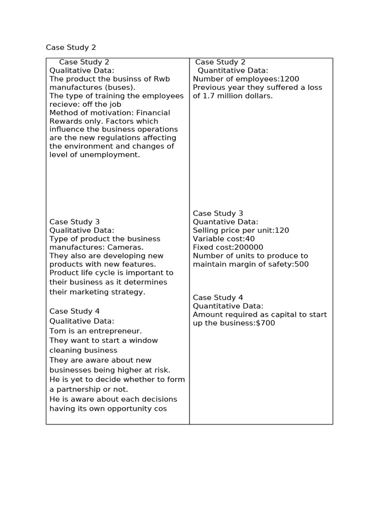 Qualitative and Quantitative Data Case Studie | PDF