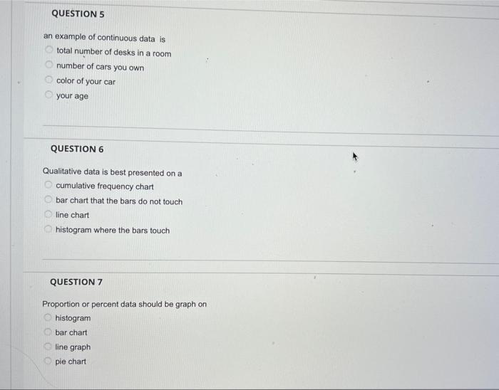 Solved QUESTION 5 an example of continuous data is total | Chegg.com
