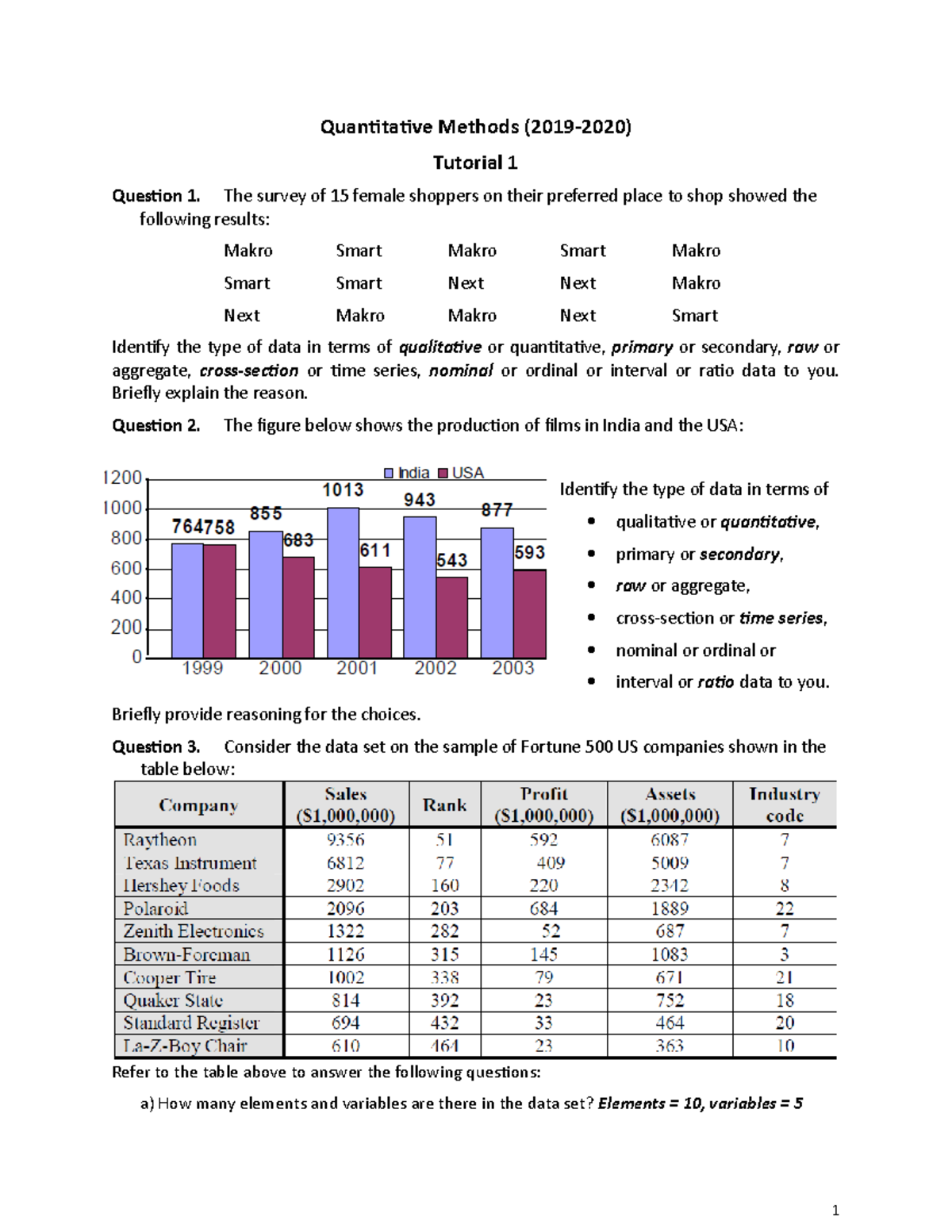 Tutorial 1- 4 - all question - Quantitative Methods - Studocu