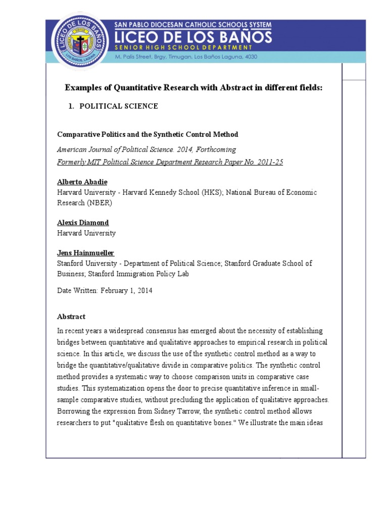 Examples of Quantitative Research With Abstract in Different Fields ...