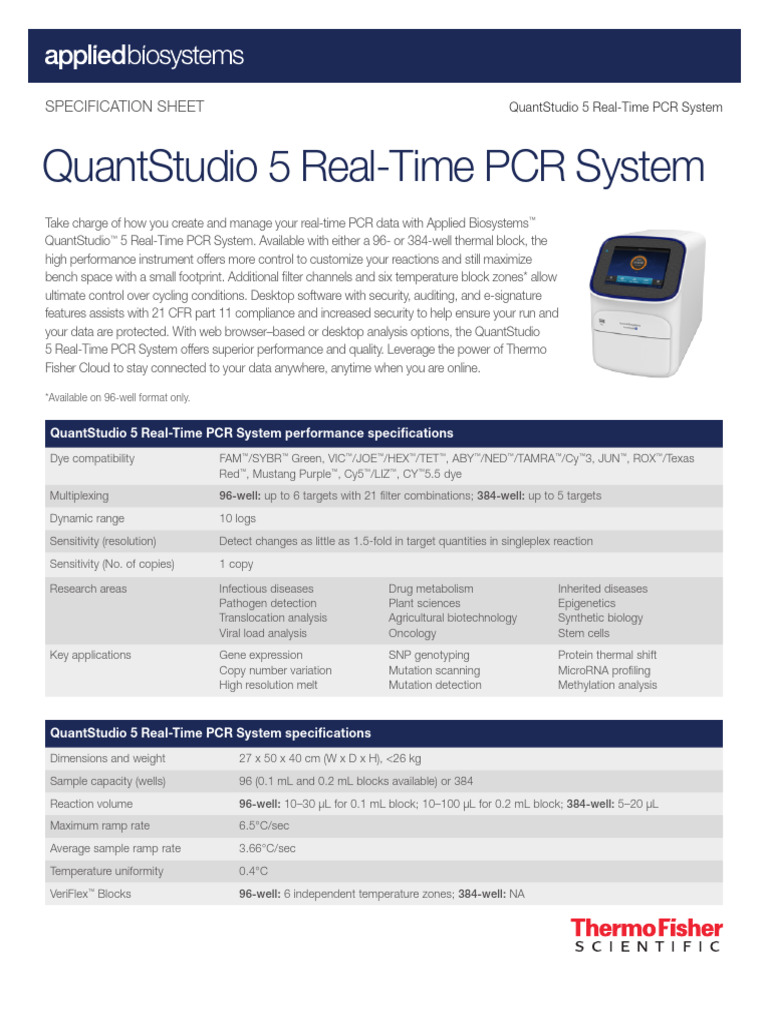 QuantStudio 5 PCR System Specifications | PDF | Real Time Polymerase ...