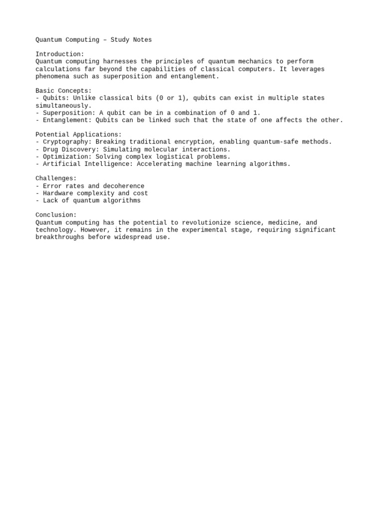 SOLUTION: Quantum computing key points summary notes - Studypool