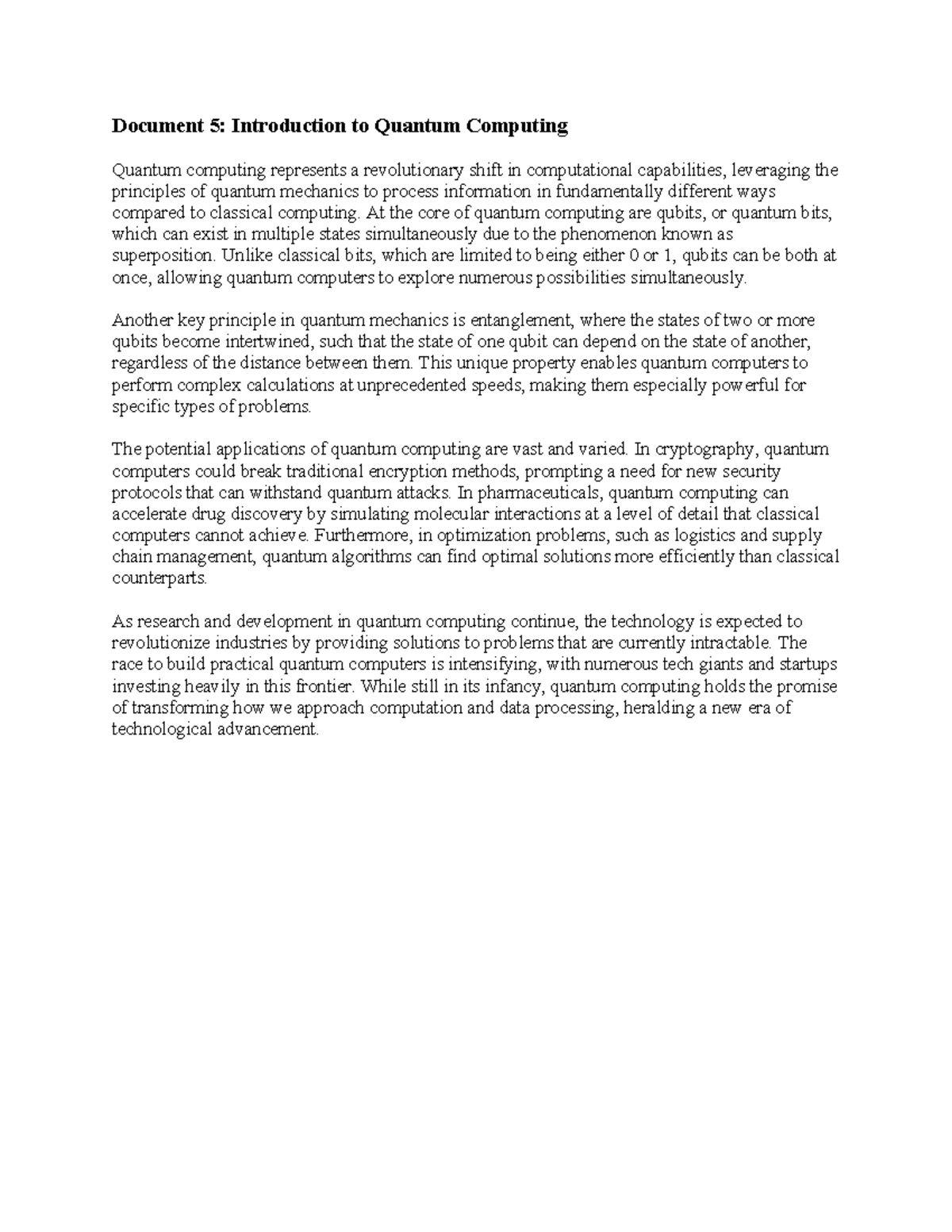 Quantum Computing - none - Document 5: Introduction to Quantum ...