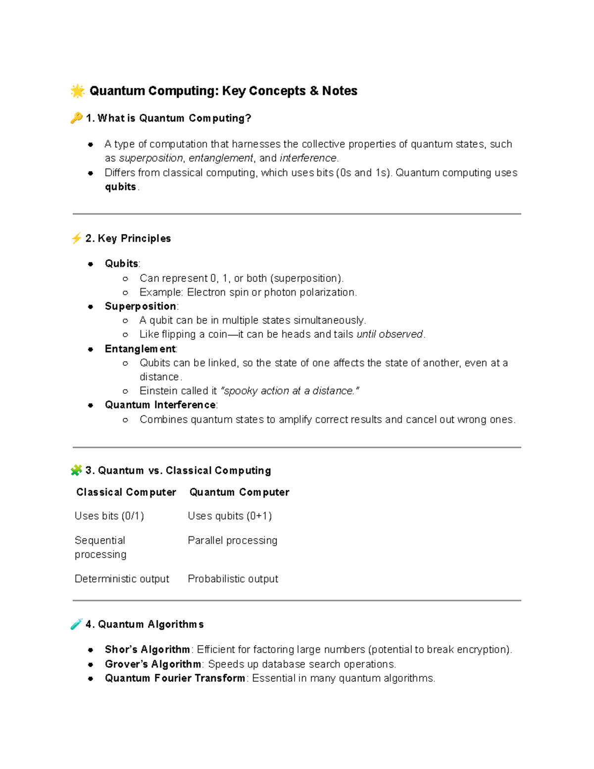 Quantum Computing notes - 🌟 Quantum Computing: Key Concepts & Notes 🔑 1 ...