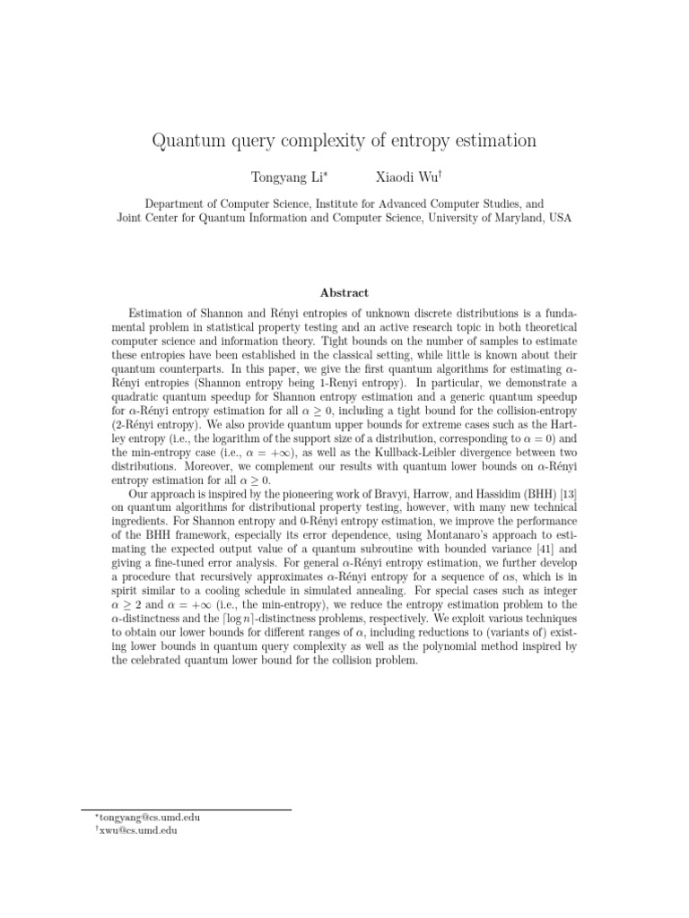 4.quantum Query Complexity of Enthropy Estimation | PDF | Quantum ...