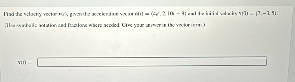 Solved: Find the velocity vector V(t) , given the acceleration vector a ...
