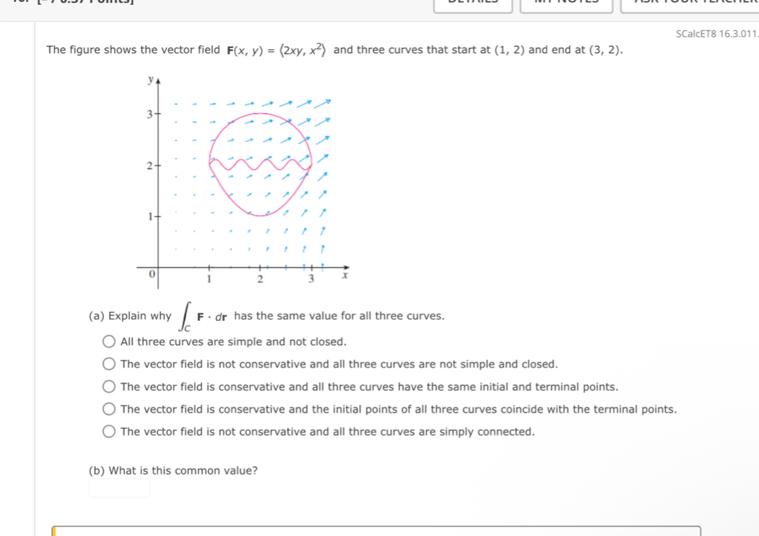 Solved: SCalcET8 16.3.011 The figure shows the vector field F(x,y)=(2xy ...
